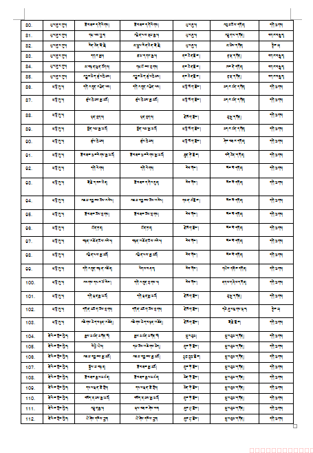| 34. | 果洛州 | 才朋 | 土旦次成桑俄 | 青海久治 | 东宗寺 | 宁玛派 |