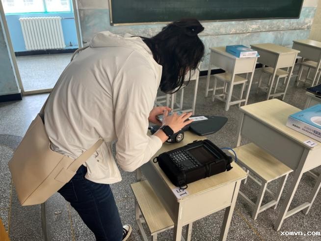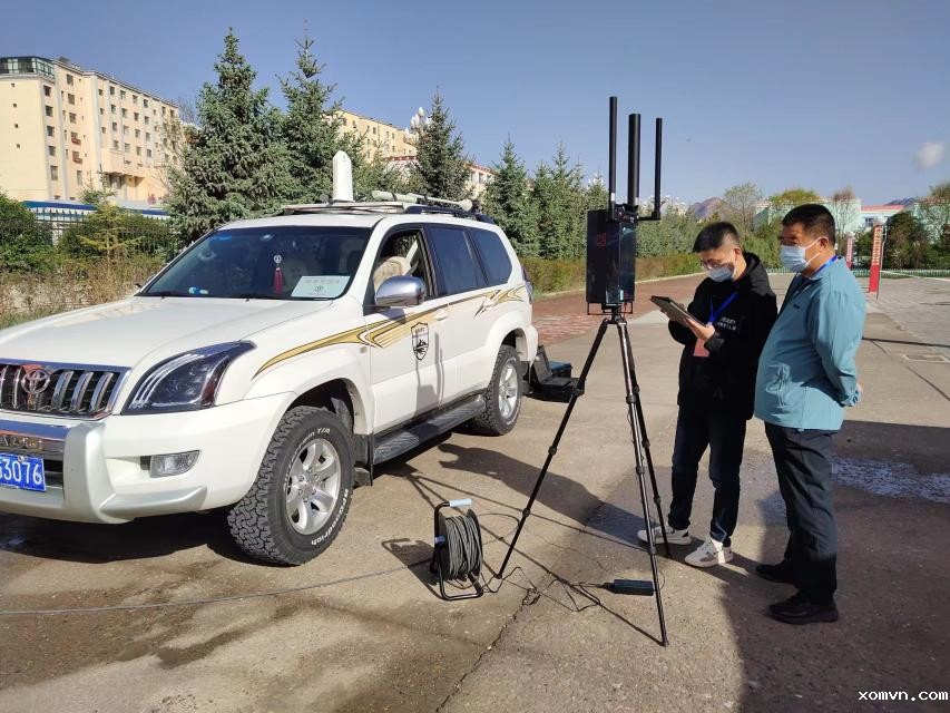 果洛州监测站工作人员在考点进行考前电磁环境测试