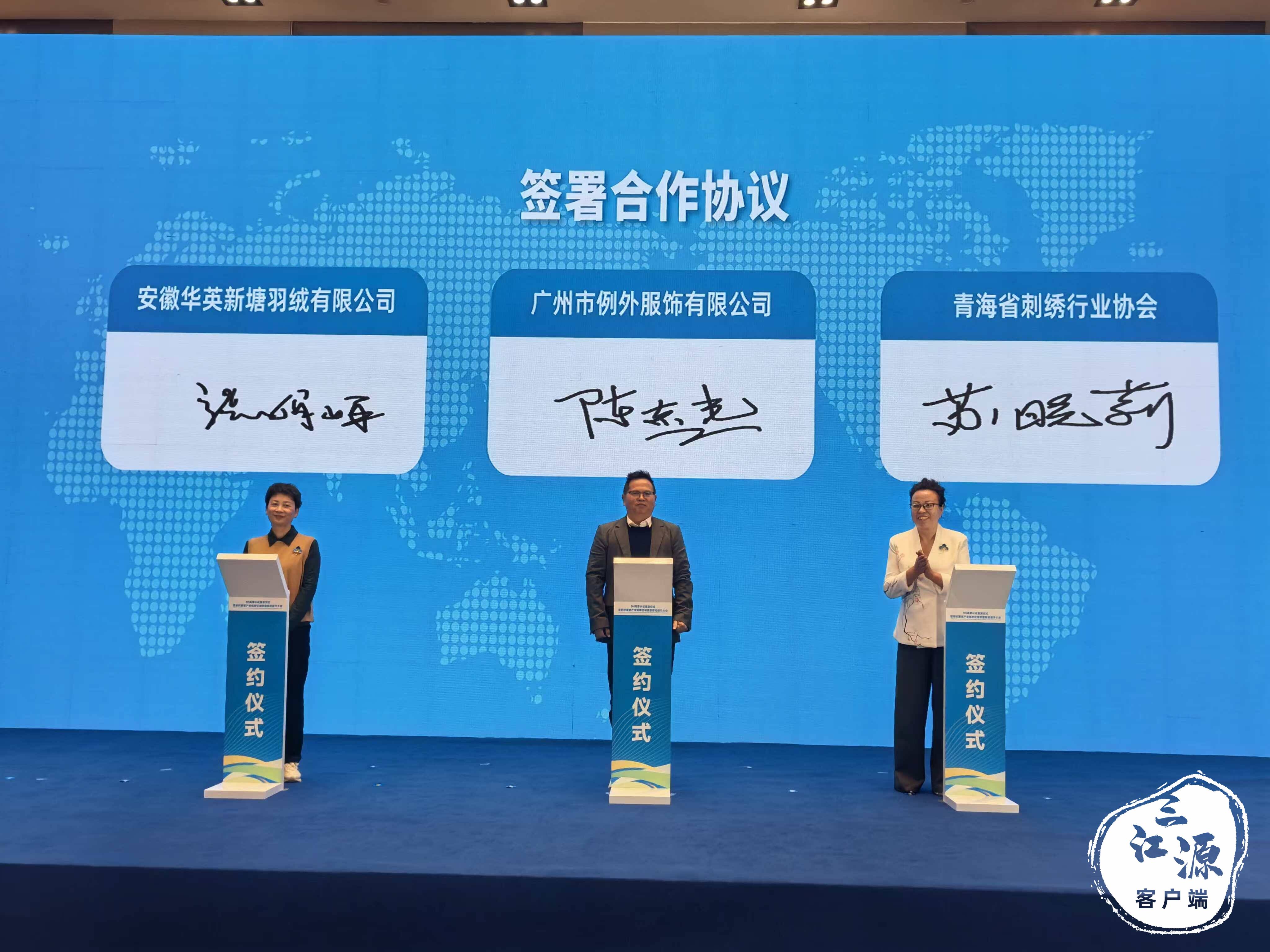 签约环节也是亮点频出,青海省刺绣行业协会与两家企业的签约,为非遗活态传承注入活力。青海省刺绣行业协会会长苏晓莉在签约后表示:“这次签约不是终点,而是我们探索非遗与市场融合的新起点。我们计划将青海刺绣的传统纹样、手工技艺,与现代服饰设计、市场需求深度绑定,既让手艺人的技艺有施展空间、能获得好收益,也让青海刺绣这张文化名片从高原走向世界,实现文化价值与市场价值的同频共振。”