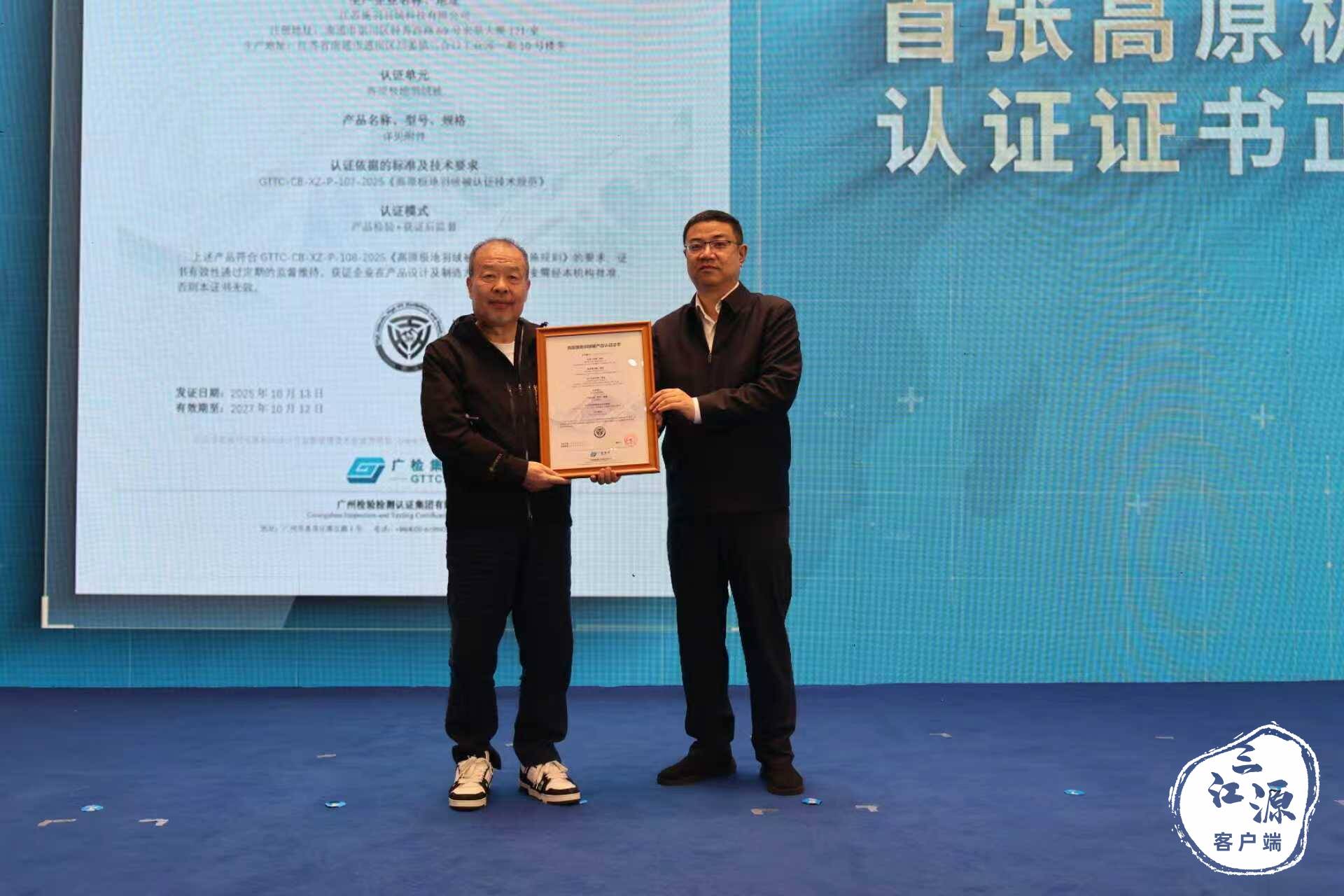 大会现场,湖南梦洁家纺股份有限公司获得全国首张3H高原认证证书。“这份认证不仅是对我们产品在极端环境下适应性的肯定,更是‘中国家纺’迈向高端市场的‘通行证’。”梦洁集团董事长姜天武手持证书激动地说:“未来我们将以3H标准为标杆,持续打磨产品品质,让更多消费者感受到‘高原级’的可靠与舒适。”