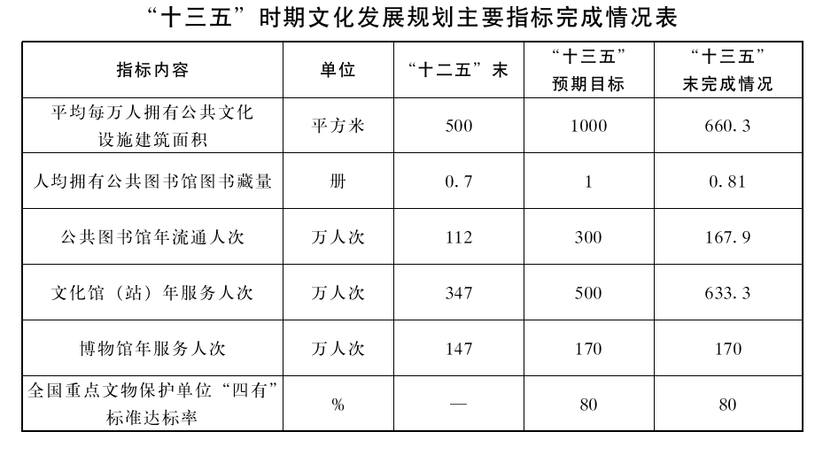 ———文化事业繁荣发展。全省艺术创作水平持续提升,现代公共文化服务更加标准化均等化,文化遗产保护利用水平不断提高,文化事业在服务全省经济社会发展、满足人民群众精神文化需求、促进社会文明程度提升等方面作用更加凸显。