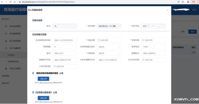 登录“青海医保APP”→“服务”→“医保办理”→“生育登记”,填写生育登记信息,并上传相关材料后提交。